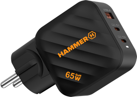 De Hammer Rapid Charge 65W is een snelle, handige en veelzijdig oplader voor uw apparaten. Deze charger is uitgerust met drie USB-poorten. Het vermogen is 65W. De Power Delivery technologie zorgt voor snel en efficiënt opladen van je smartphone, tablet op laptop.